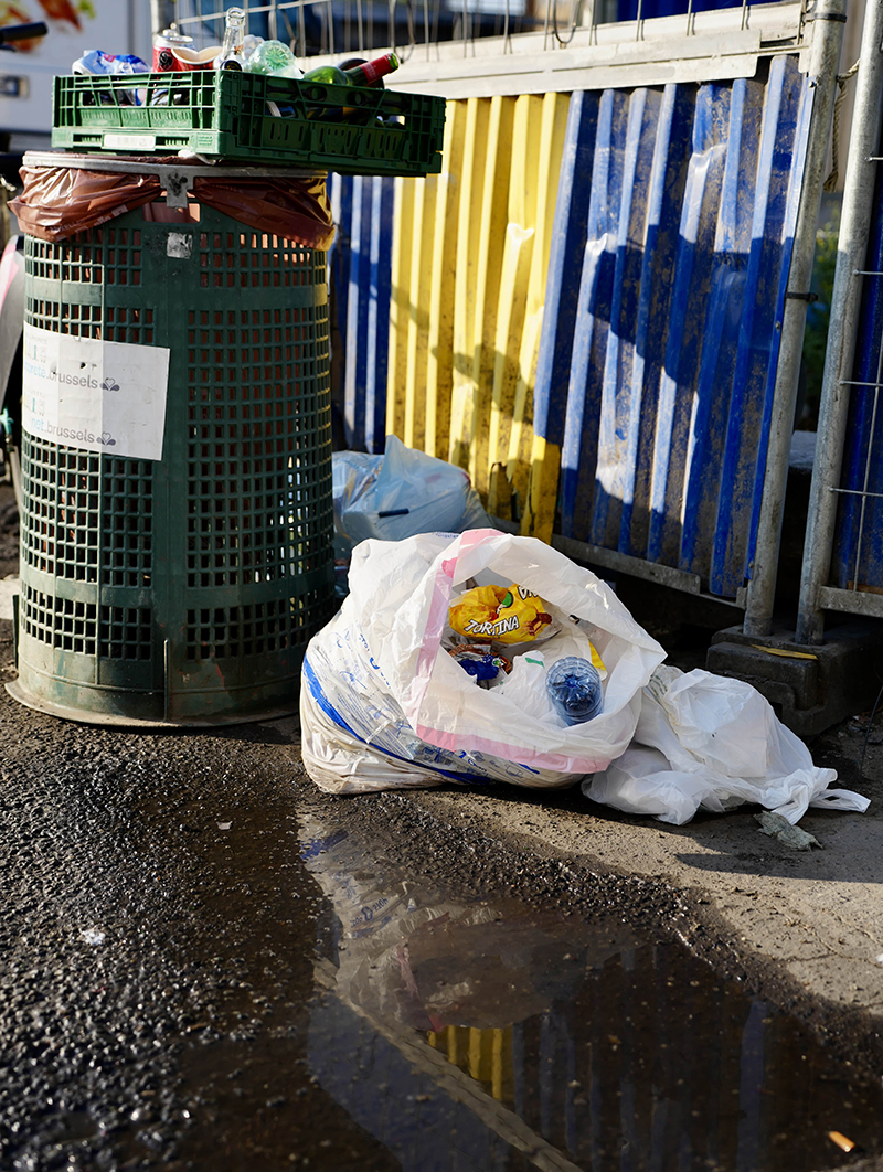 Parmi les faits qui ont un impact non-négligeable sur le cadre de vie des Bruxelloi.s.e.s., on peut pointer les sacs-poubelles abandonnés par leurs propriétaires, en dehors du cadre légal, sur les voiries, ou encore le dépôt de différentes catégories d’objets ou de déchets sur les trottoirs et places publiques.